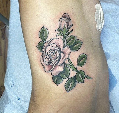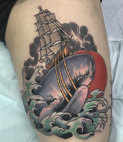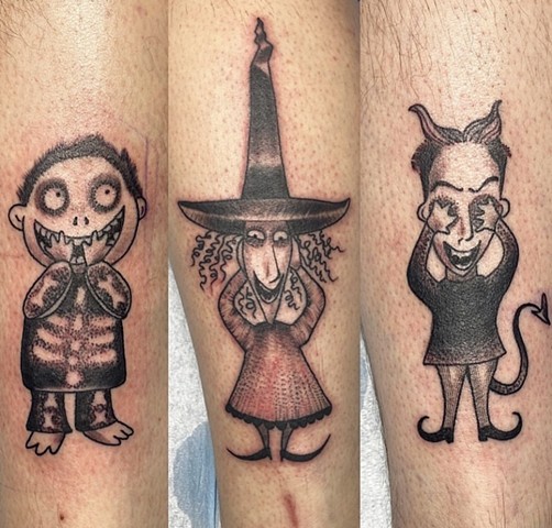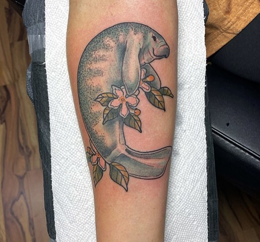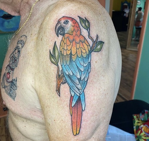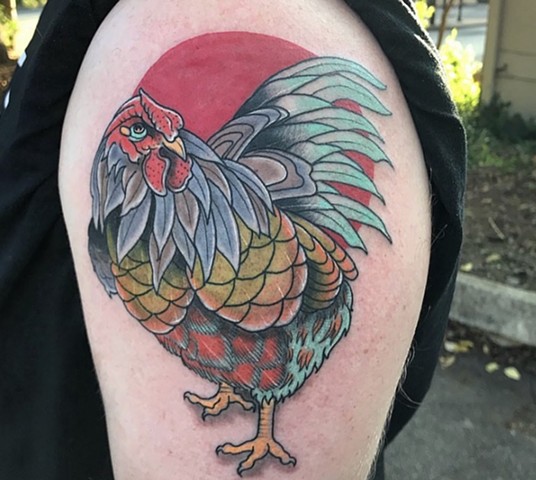 He loves to work in traditionalt color, black and gray and illustrative designs.