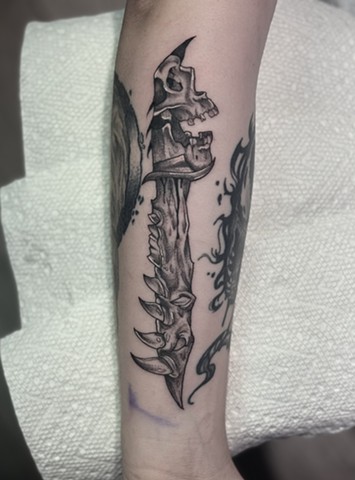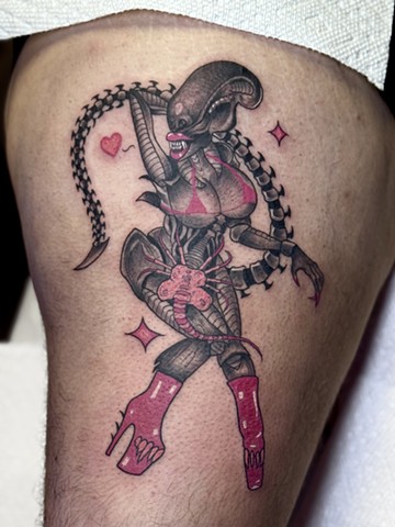 Kate Graves is our queer horror QUEEN! She specializes in illustrative black and grey. From stylized portraits, Anime, animals, and anything Halloween. Kate, like everyone at Thistle and Pearl, offers a safe and inclusive space for everyone regardless of sex, race, and gender. All beautiful bodies are welcome in her chair!